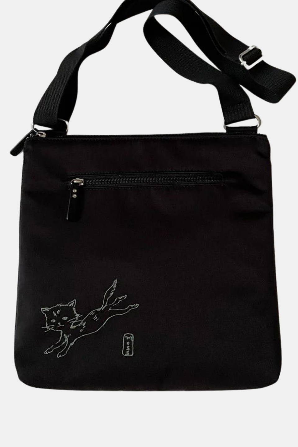 Large Nylon Cross-Body Shoulder Bag with Cat Print
