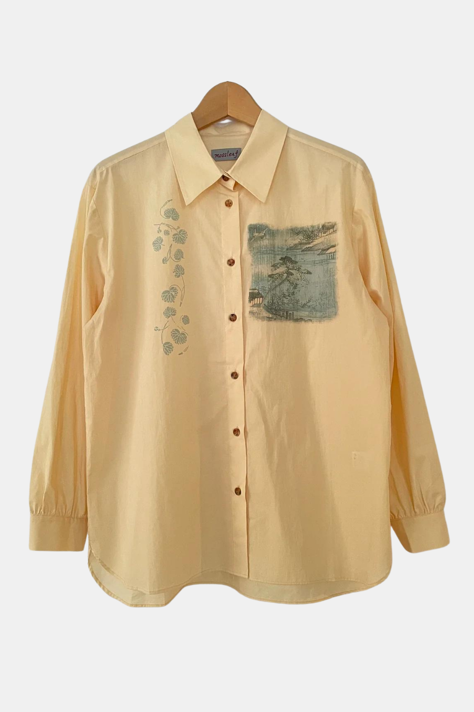 Willa - Pointed Collar Shirt with Asian Painting Print - Hazel