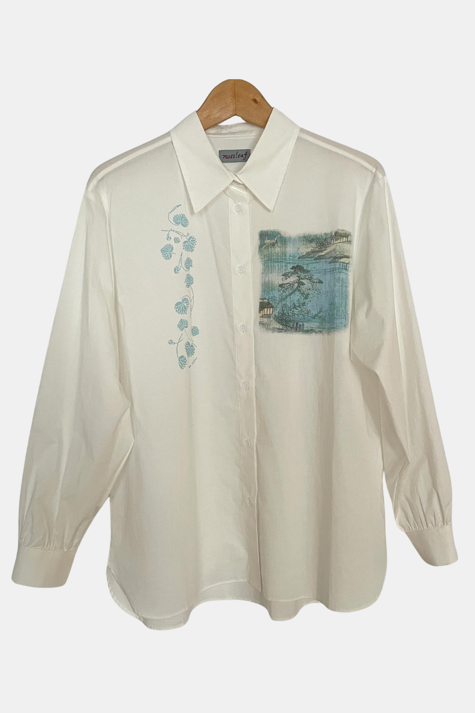 Willa - Pointed Collar Shirt with Asian Painting Print - White