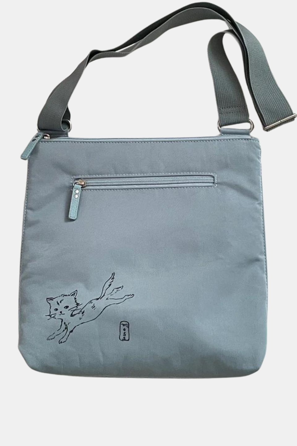Large Nylon Cross-Body Shoulder Bag with Cat Print