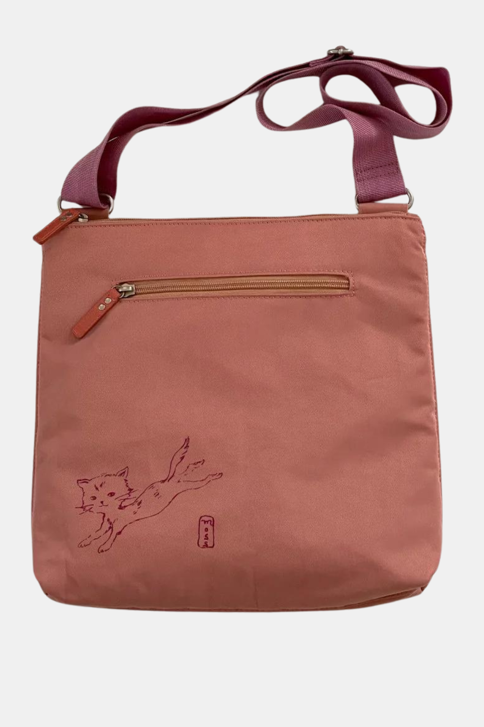 Large Nylon Cross-Body Shoulder Bag with Cat Print